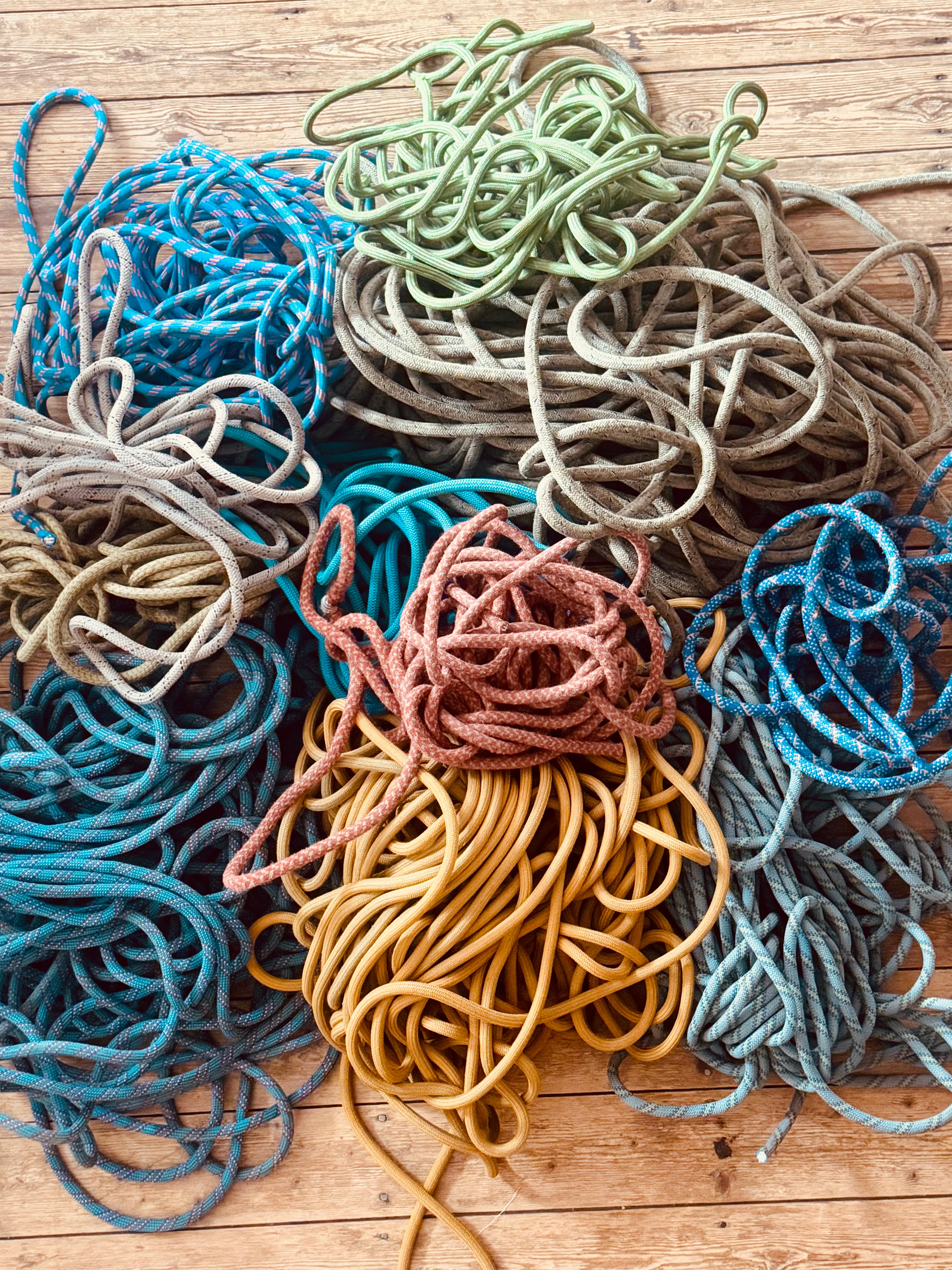 Je récupère des cordes d’escalade et des baudriers usés, chargés d’histoires, de passions et d'aventures, de défis et d'explorations.